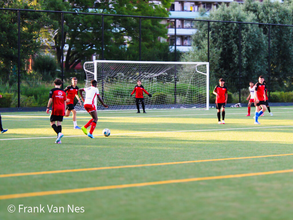 goede voorzet van Jayden kan Hamza de bal intikken 1-1. We blijven weer aanvallen en met een goed samen spel kan Jayden een voorzet geven op Ali die de 2-1 scoort. Maar na een vrije loop zonder enige moeite van notabene een wel erg grote verdediger kan deze vanaf de 16 een hard schot op doel geven en deze gaat er helaas dan ook in het doel 2-2.