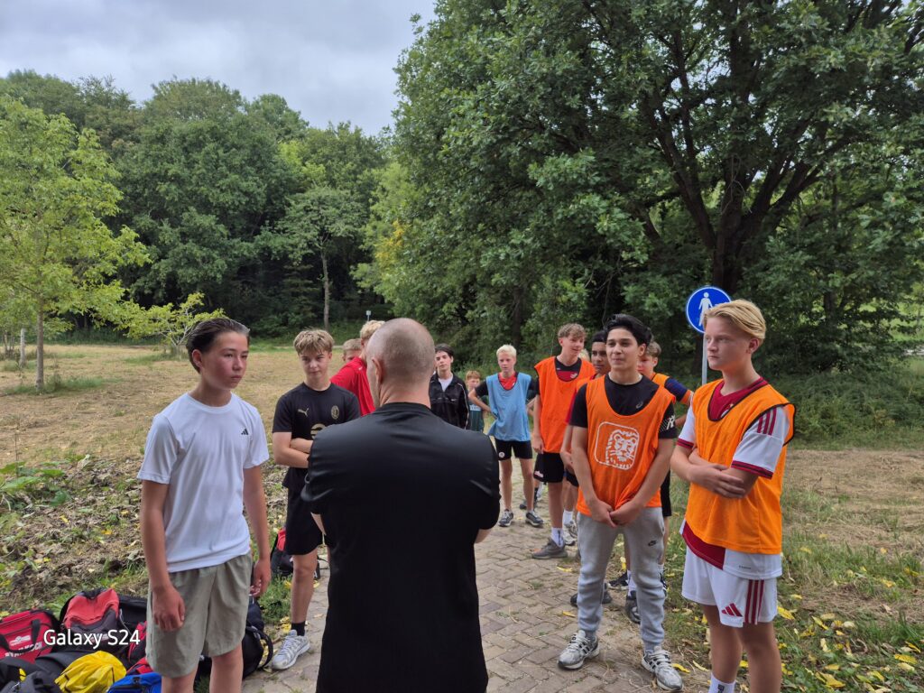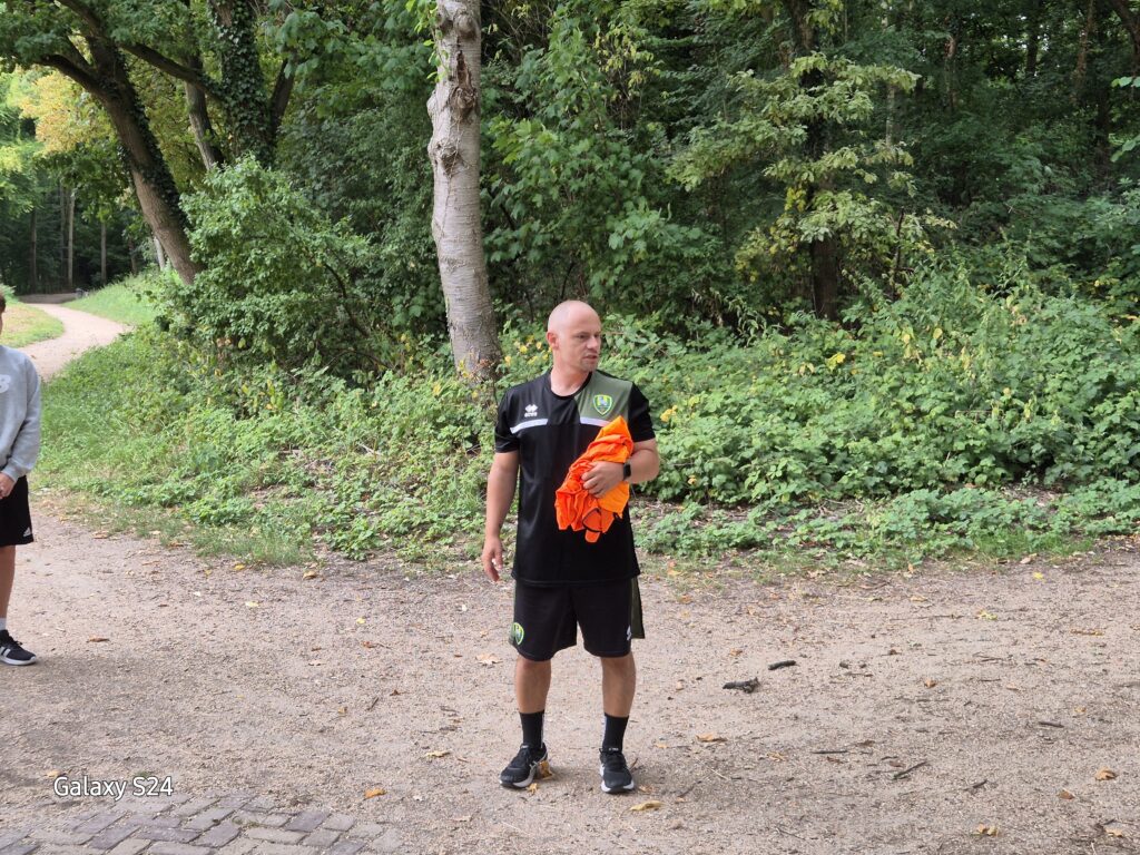 Zaterdag 16 augustus om kwart voor 10 moesten de in dit geval nog de jongens (meiden zijn nog op vakantie) van de 14-1 en de 15-1 verzamelen op de parkeerplaats van het bos in Rijswijk. Onder leiding van Michael Smitskam, de trainer van de 15-1, wordt de groep in 2 groepen verdeeld, 1 met hesje en 1 zonder. We lopen met iedereen naar het beginpunt waar de de jongens zullen beginnen met het lopen van 4 rondjes van ongeveer 800 meter zonder te gaan wandelen. Dit was wel erg pittig voor sommige jongens. En niet iedereen wist het helemaal te doen zonder te wandelen.