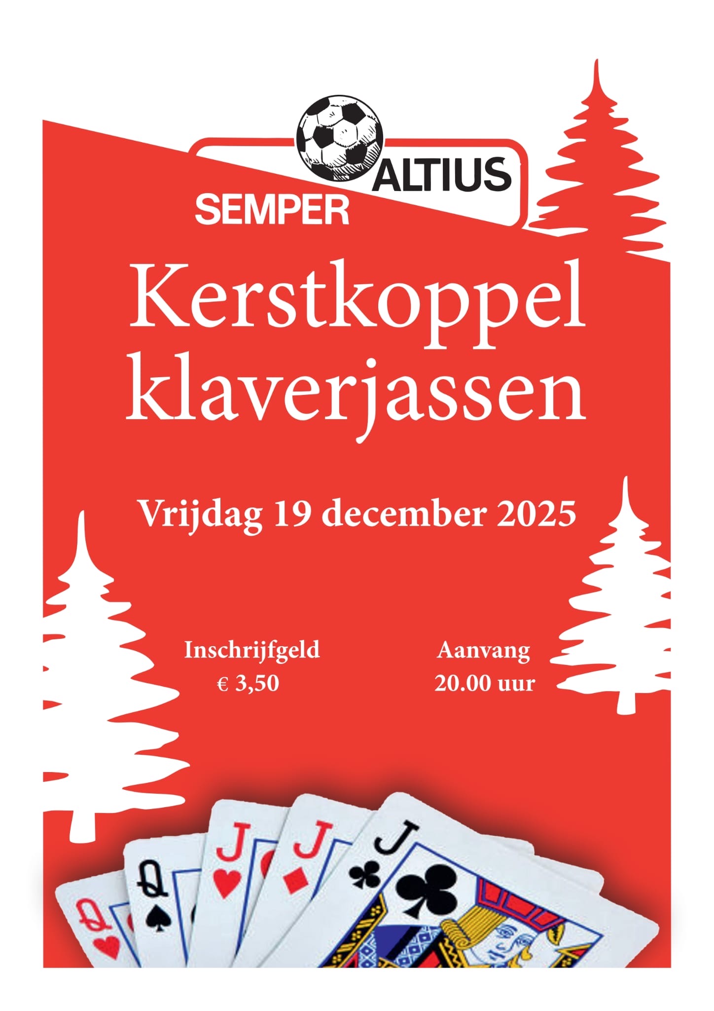 Beste Ouders, verzorgers en spelers, Op zaterdag 20 september 2025 start de Grote Clubactie. A.s. zaterdag of maandag worden de verkoopkaarten uitgedeeld aan jullie trainer. Ook dit jaar doen wij als Semper Altius mee en willen wij natuurlijk zoveel mogelijk loten verkopen. Een lot kost € 3,-, waarvan 80% (ofwel € 2,40 per lot) naar de clubkas van Semper Altius gaat! Bovendien maken kopers kans op […]